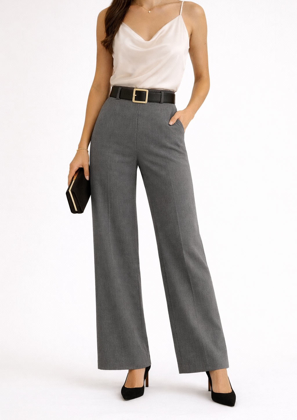Descubre el pantalón de vestir encanto mujer de traje elegante, una prenda imprescindible en el armario femenino actual 🖤✨. Diseñado para mujeres que buscan elegancia, comodidad y versatilidad, este pantalón de traje destaca por su ajuste favorecedor, su diseño cuidado y su goma elástica trasera que se adapta cómodamente hasta la talla 40. Disponible en tres colores atemporales —gris, marrón y negro—, es ideal tanto para looks profesionales como para estilismos más sofisticados de día o de noche.