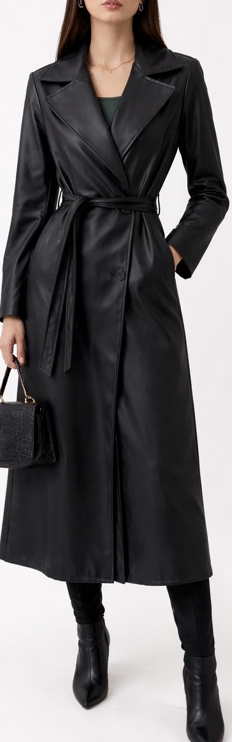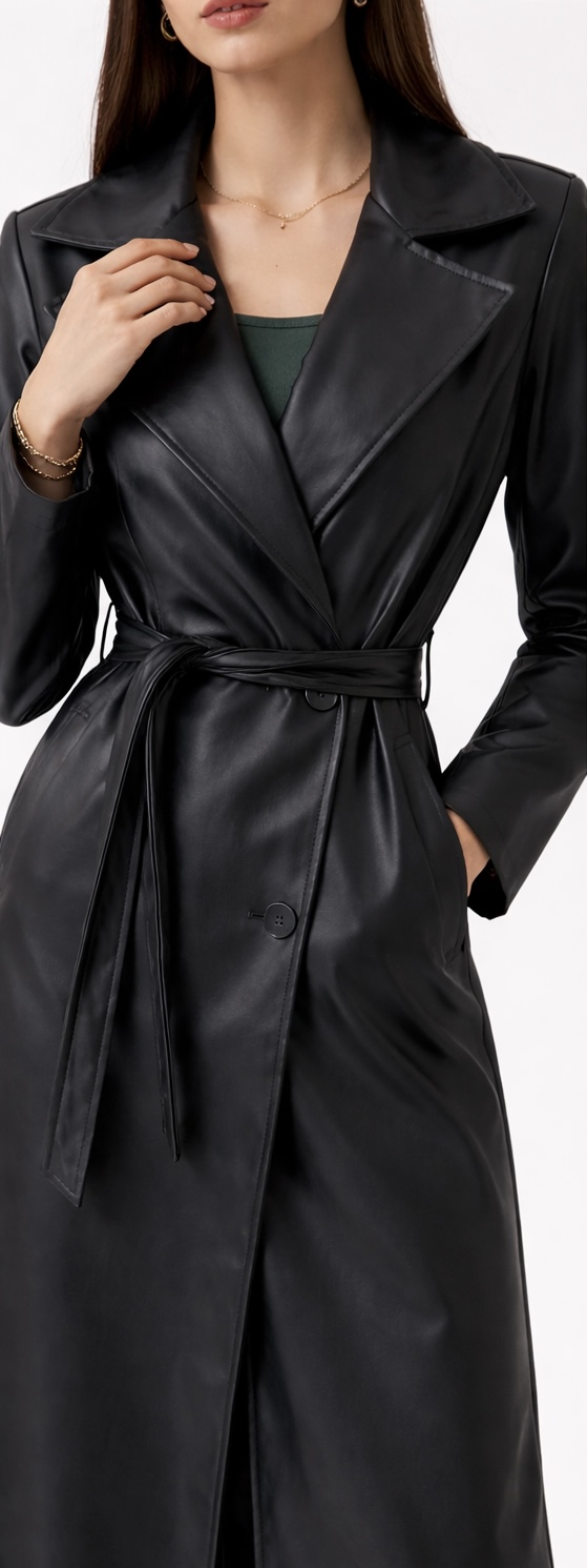 El contraste entre la estructura del pantalón y la textura de la polipiel crea un conjunto elegante, profesional y moderno. Completa con tacones o mocasines y accesorios discretos.